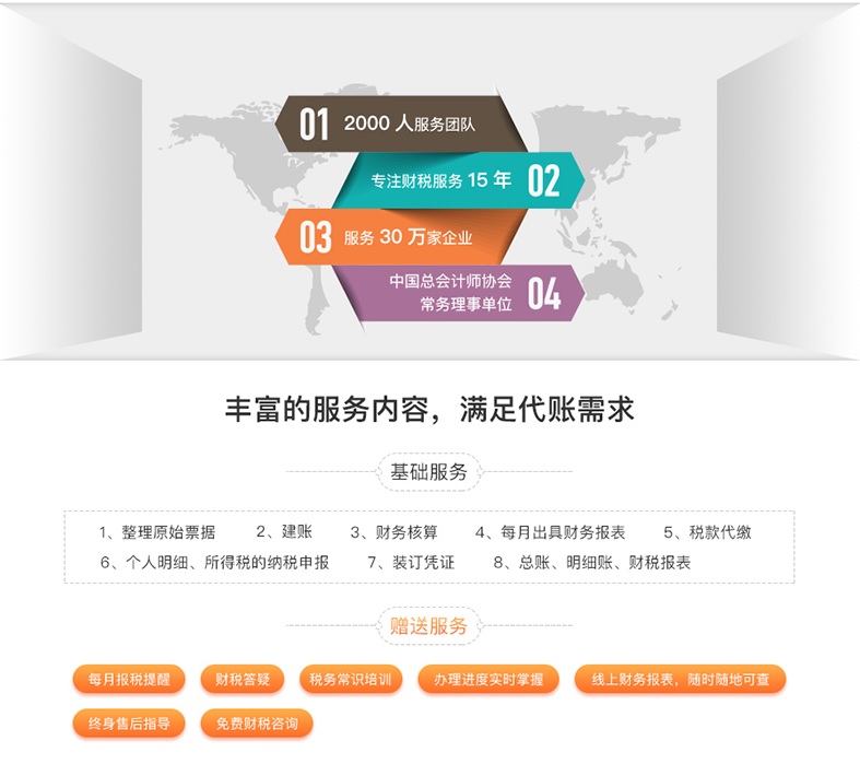 為什么選擇代理記賬?降低成本,節省費用。企業支付不到一個會計人員的費用,就可以享受到專業全面的服務,提供專業記賬平臺隨時隨地查看賬款報表。選擇一個優質代理記賬公司能讓企業:
