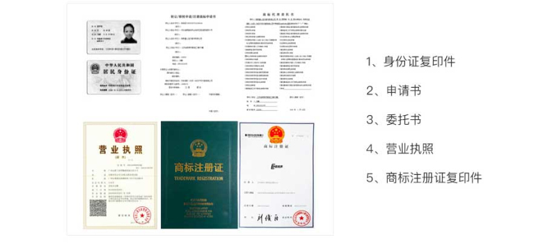 1) 轉讓申請/注冊商標申請書》; 2) 轉讓人和受讓人的身份證明文件(復印件); 3) 代理委托書》 4) 轉讓方還應當提交商標有關證明文件。